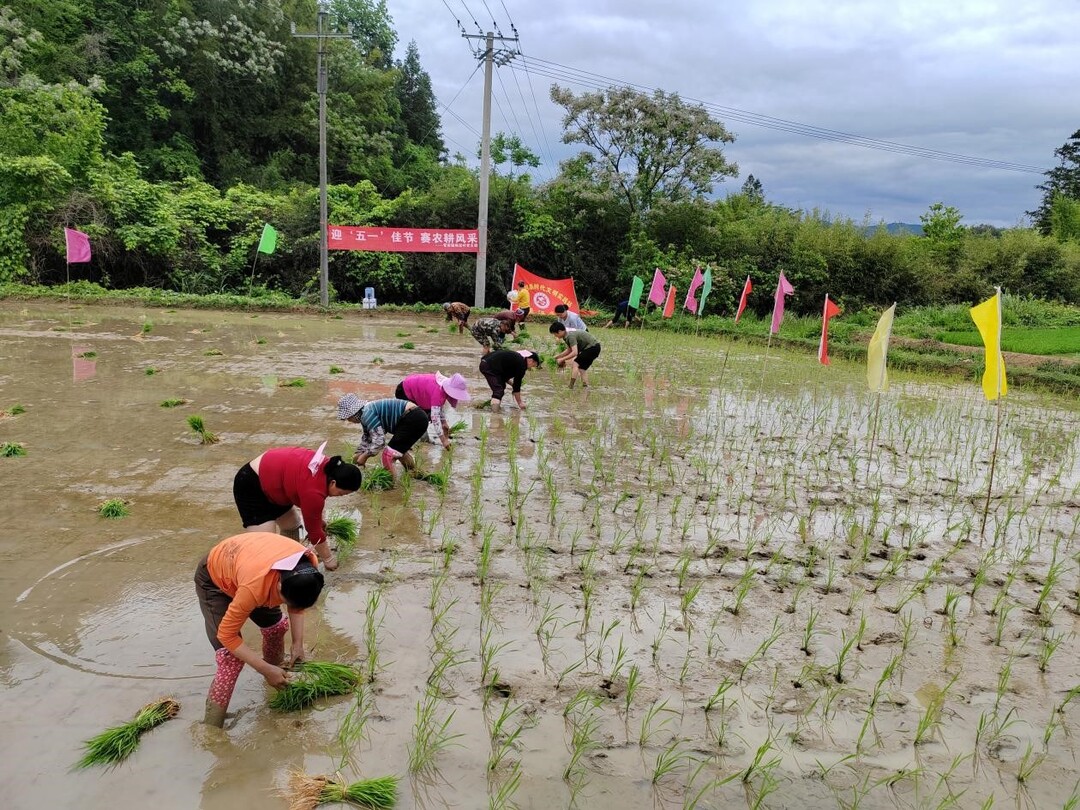 活動(dòng)當(dāng)日,梅里村水田內(nèi)波光粼粼,嫩綠的秧苗隨風(fēng)輕擺,一派生機(jī)盎然的景象。隨著裁判哨聲響起,參賽選手迅速投入緊張激烈的競(jìng)賽環(huán)節(jié)。他們身姿矯健,彎腰俯身,左手攥緊秧苗,右手熟練分苗、插秧,動(dòng)作一氣呵成,栽插完成后穩(wěn)步后退,整個(gè)過(guò)程行云流水。田間地頭呈現(xiàn)出一片熱火朝天、奮勇?tīng)?zhēng)先的勞動(dòng)場(chǎng)景。