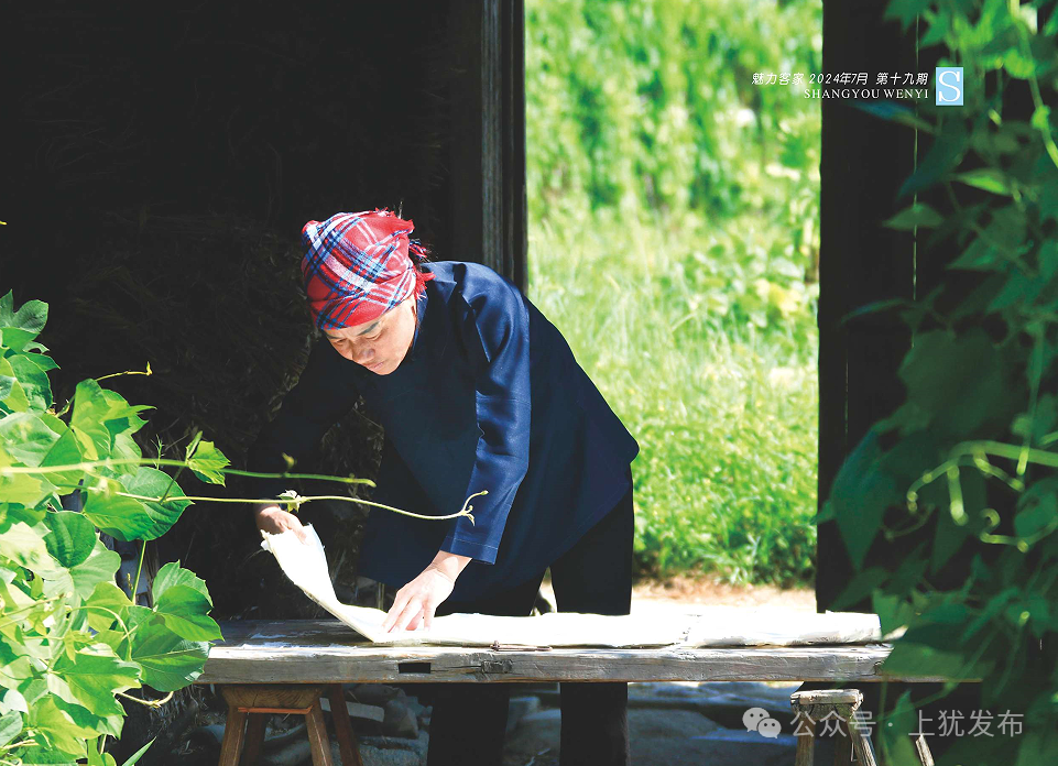 猶記得,走進那幢古老的上猶客家民居,傳承久遠的傳統(tǒng)手工布鞋制作技藝在我們眼前徐徐鋪展開來??图冶砩闼氐诺目图曳椇皖伾r艷的方頭帕,與院落中綠色的瓜果藤蔓相映成趣,在明亮奪目的陽光下,展現(xiàn)出一派勃勃生機,仿佛在呼喚這漸行漸遠的傳統(tǒng)手工技藝的回歸。