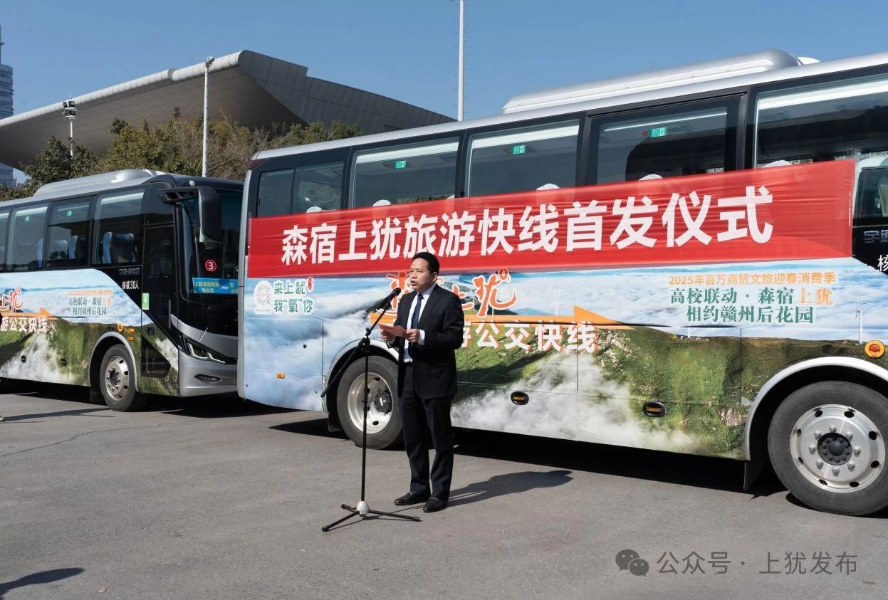 陽(yáng)光正好,微風(fēng)輕拂。1月14日,“森宿上猶”旅游公交快線首發(fā)儀式在贛州市體育中心廣場(chǎng)正式啟動(dòng)。縣委常委、宣傳部部長(zhǎng)馮定春致辭并宣布發(fā)車。