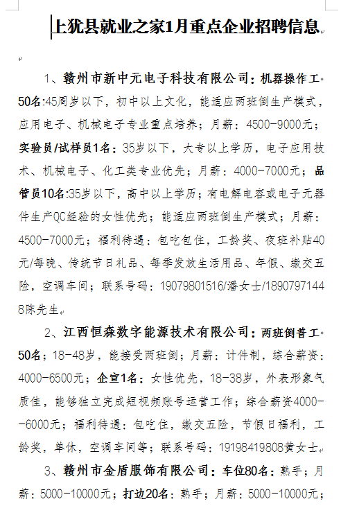 2025年2月份上猶縣重點(diǎn)企業(yè)招聘信息