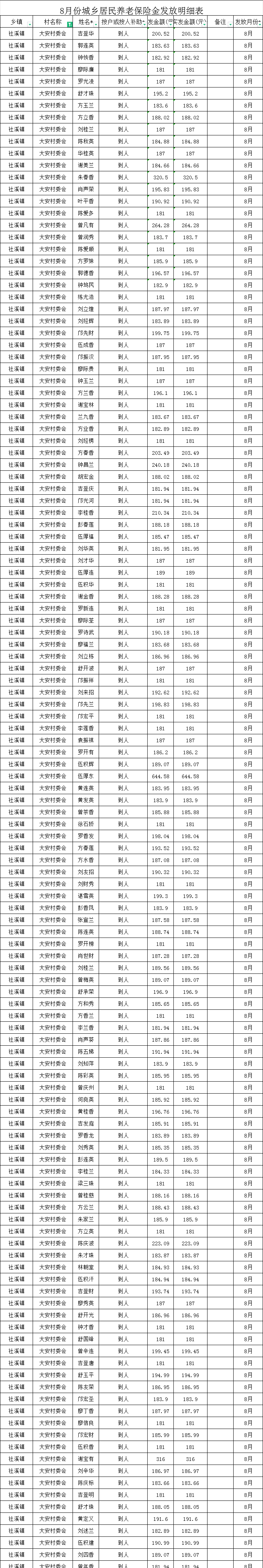 【養(yǎng)老保險】社溪鎮(zhèn)大安村08月城鄉(xiāng)居民養(yǎng)老保險發(fā)放名單