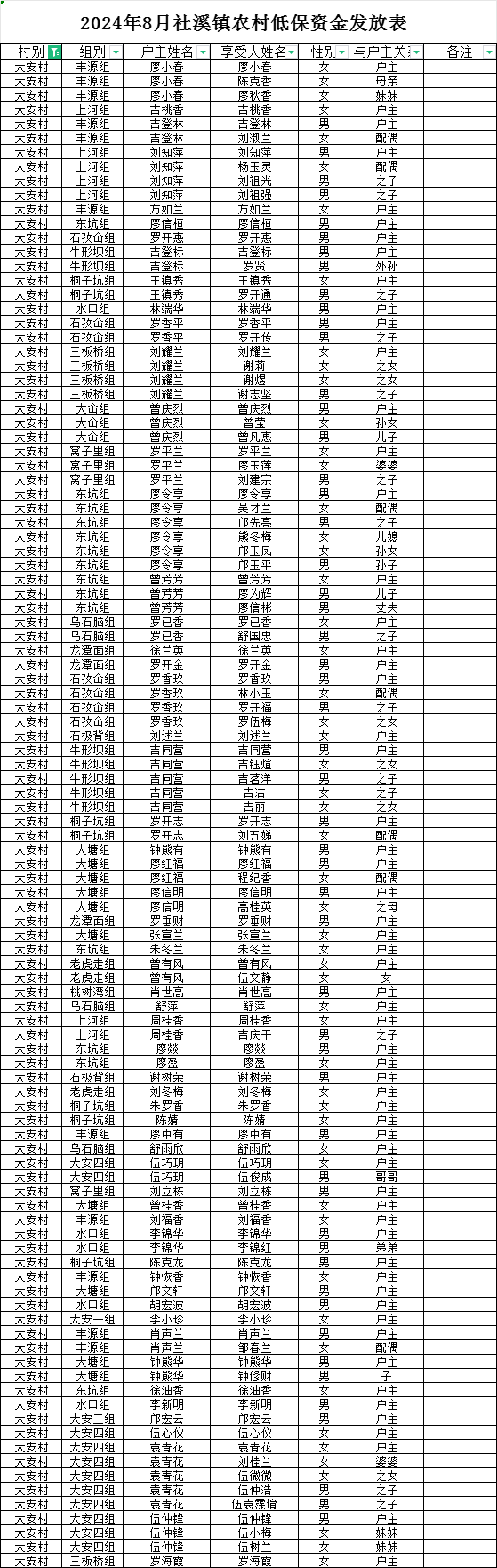 【最低生活保障】2023年8月大安村農(nóng)村低保資金發(fā)放公示