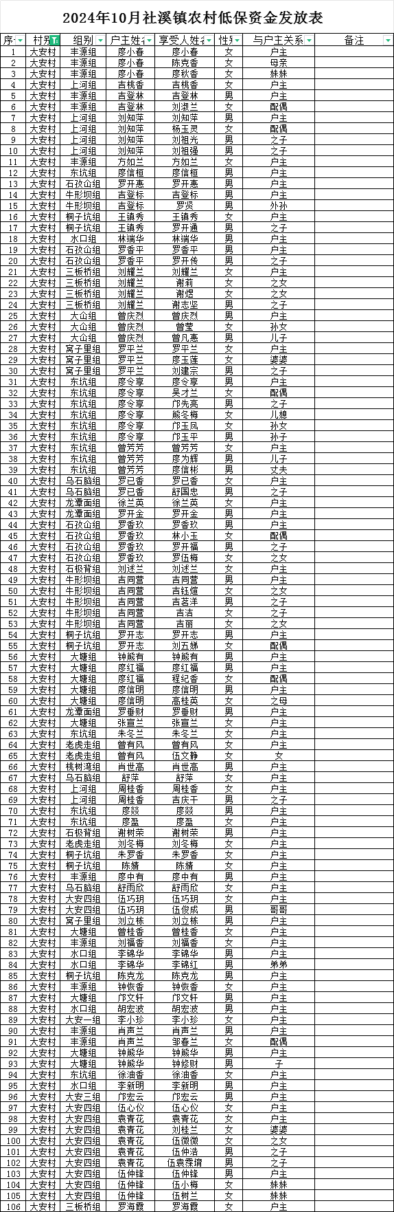 【最低生活保障】2024年10月大安村農(nóng)村低保資金發(fā)放公示表