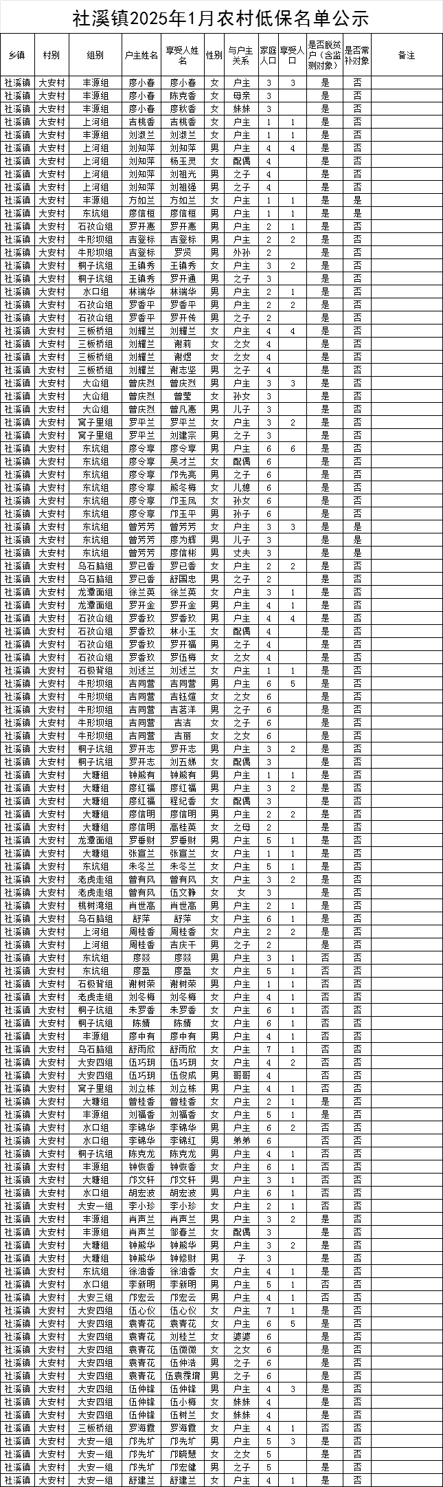 【最低生活保障】2025年1月大安村農(nóng)村低保資金發(fā)放公示表