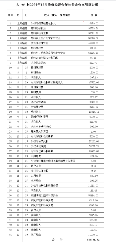 【財(cái)務(wù)收支】2025年1月大安村財(cái)務(wù)收支