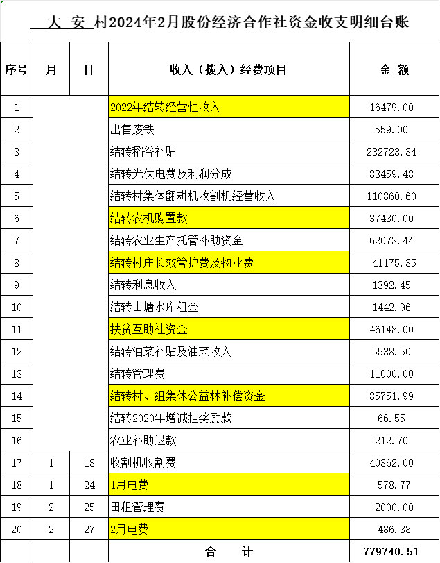 【集體統(tǒng)一經(jīng)營性資產(chǎn)】2024年2月份村集體經(jīng)濟收入情況收入公示表