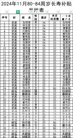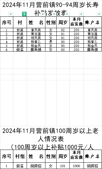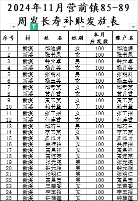 營前鎮(zhèn)新溪村2024年11月高齡補貼發(fā)放表