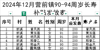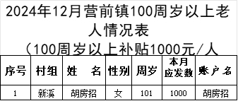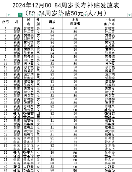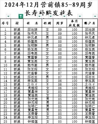2024年營前鎮(zhèn)新溪村長壽補貼發(fā)放表