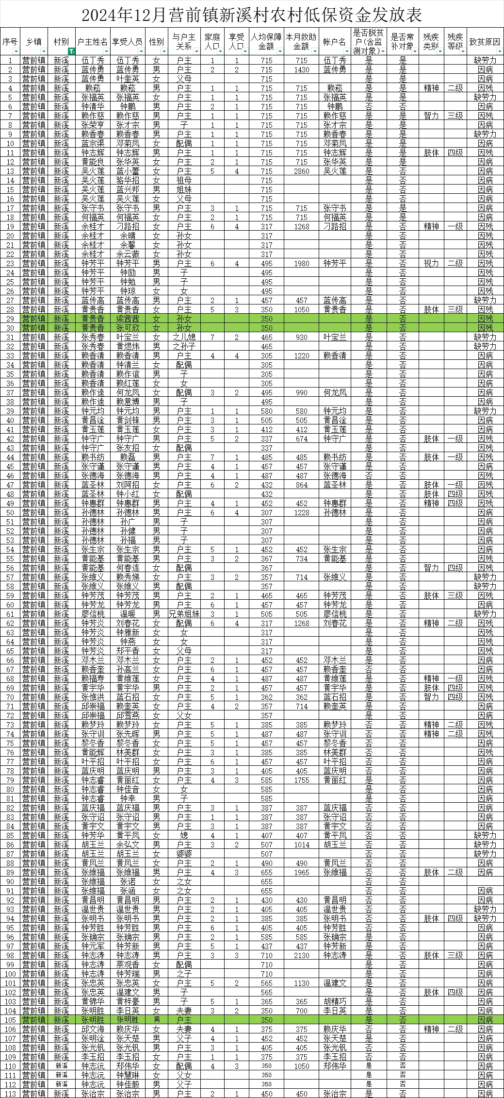 2024年?duì)I前鎮(zhèn)新溪村低保發(fā)放表