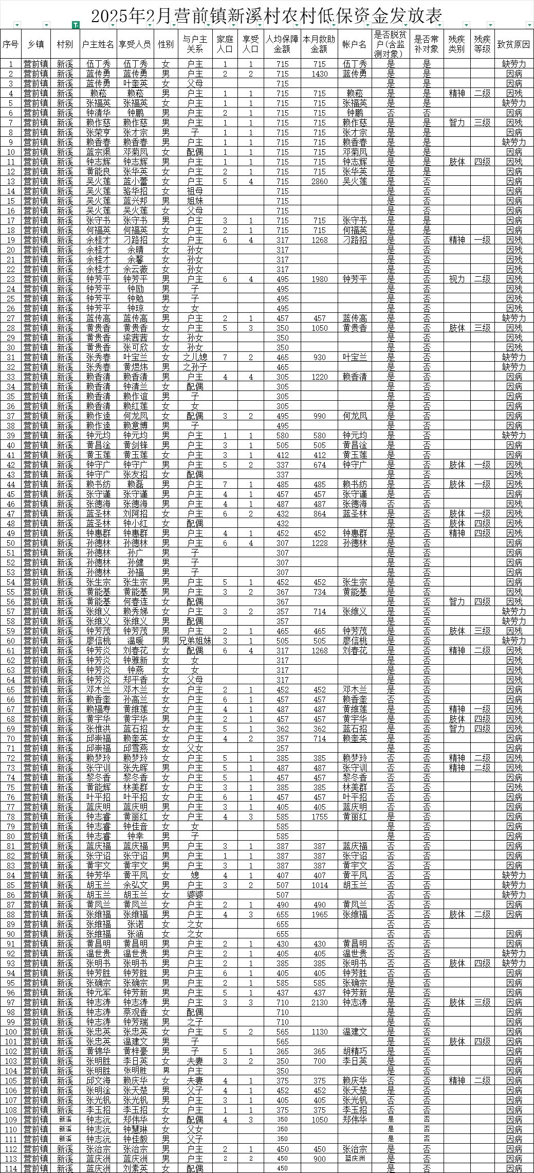 2025年2月?tīng)I(yíng)前鎮(zhèn)新溪村低保金發(fā)放表