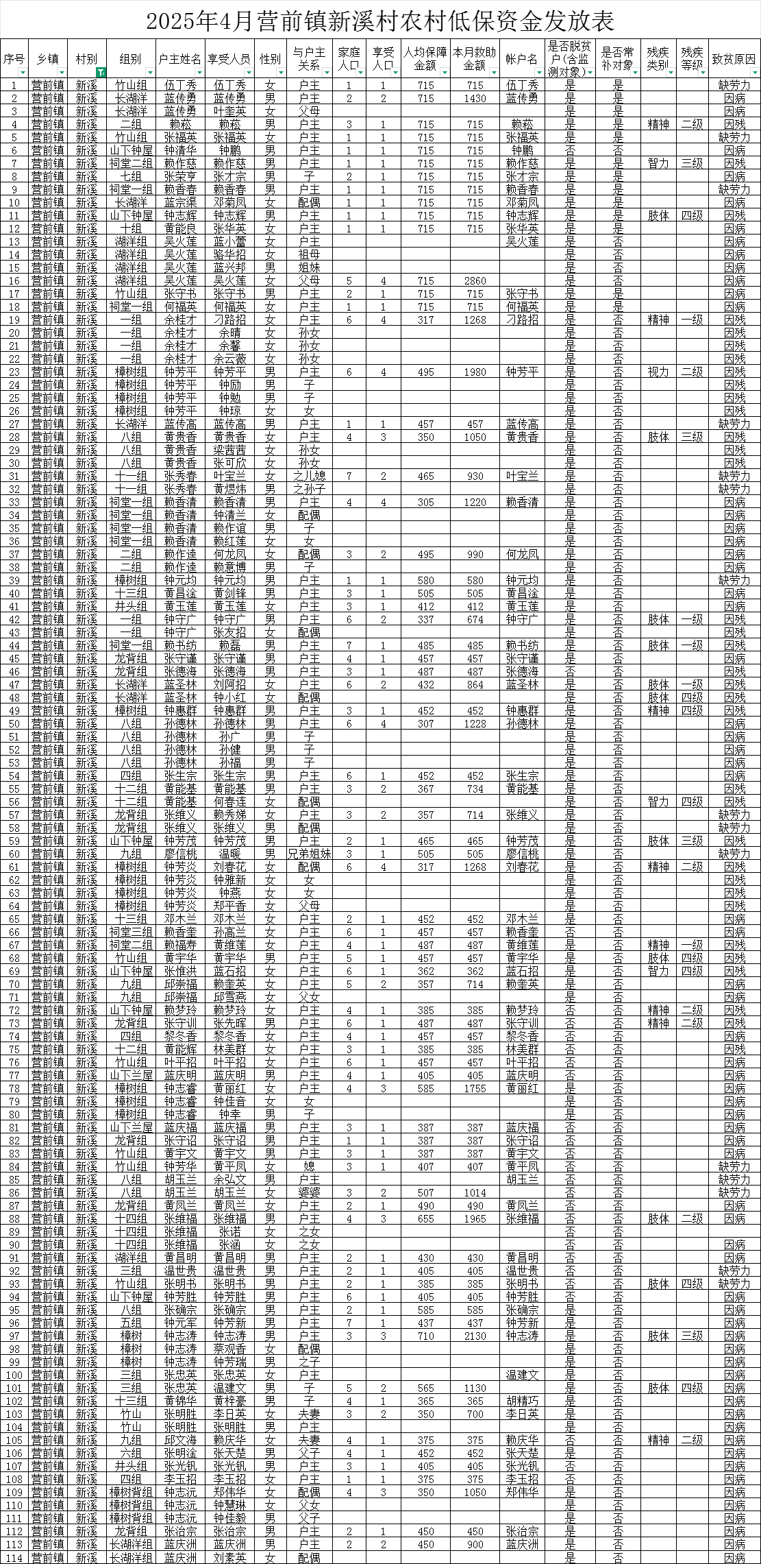 2025年4月營前鎮(zhèn)新溪村低保金發(fā)放表