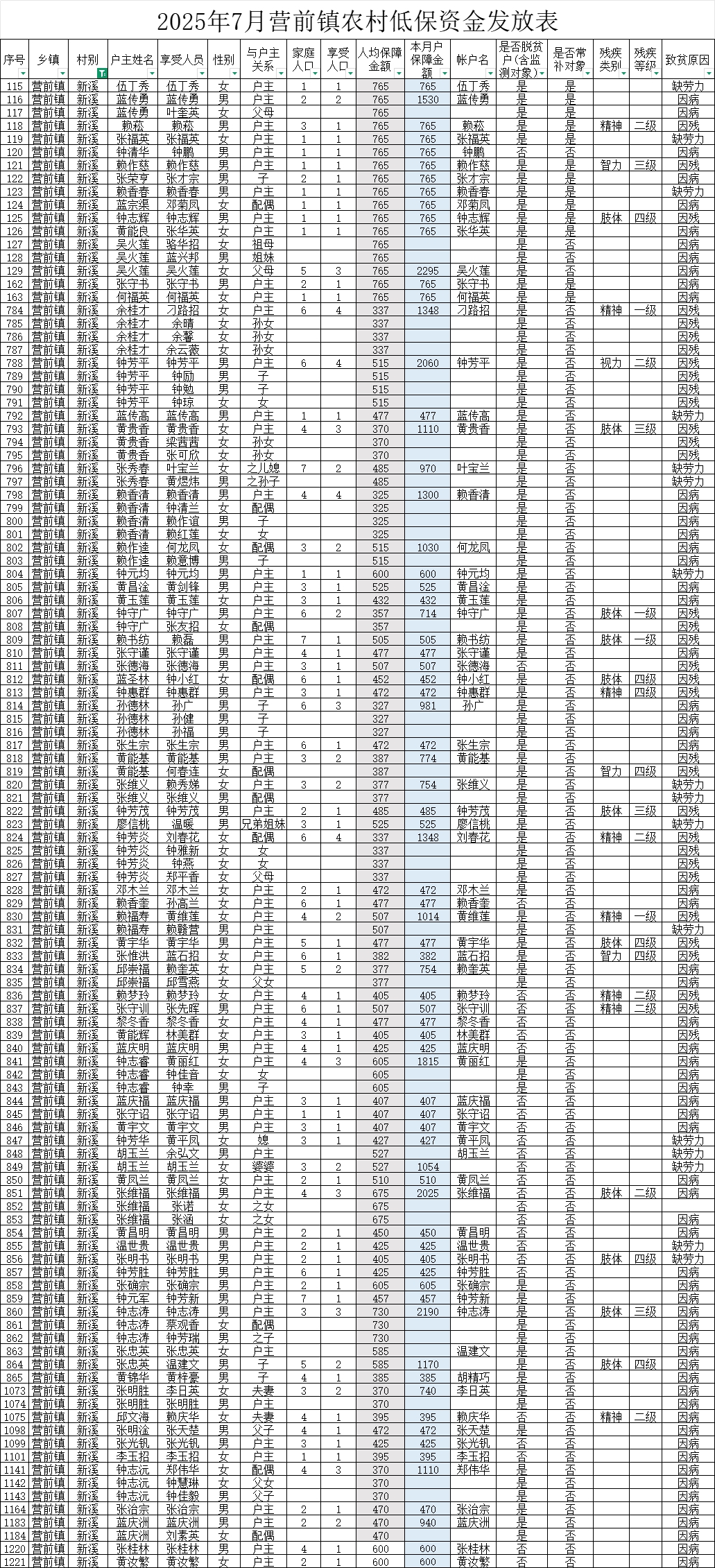 2025年7月?tīng)I(yíng)前鎮(zhèn)新溪村低保資金發(fā)放表