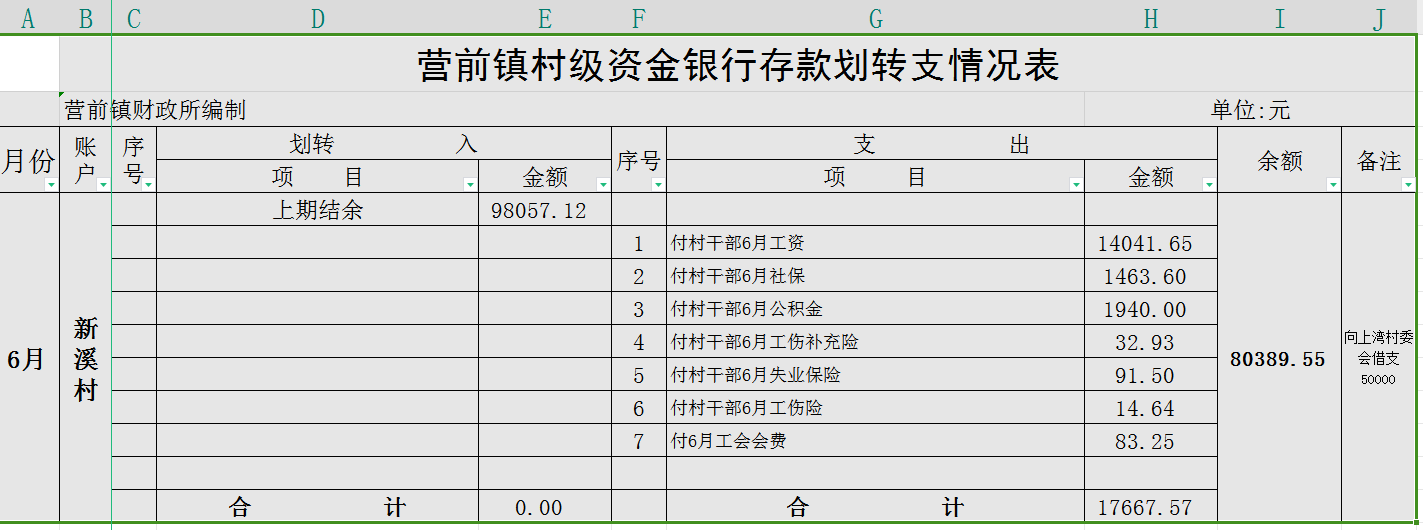 營前鎮(zhèn)新溪村村級資金銀行存款劃轉(zhuǎn)支情況表(6月)
