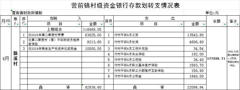 2025年4月?tīng)I(yíng)前鎮(zhèn)新溪村財(cái)務(wù)收支登記表