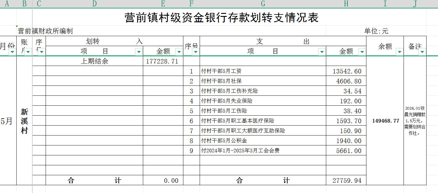 營(yíng)前鎮(zhèn)新溪村村級(jí)收支情況表