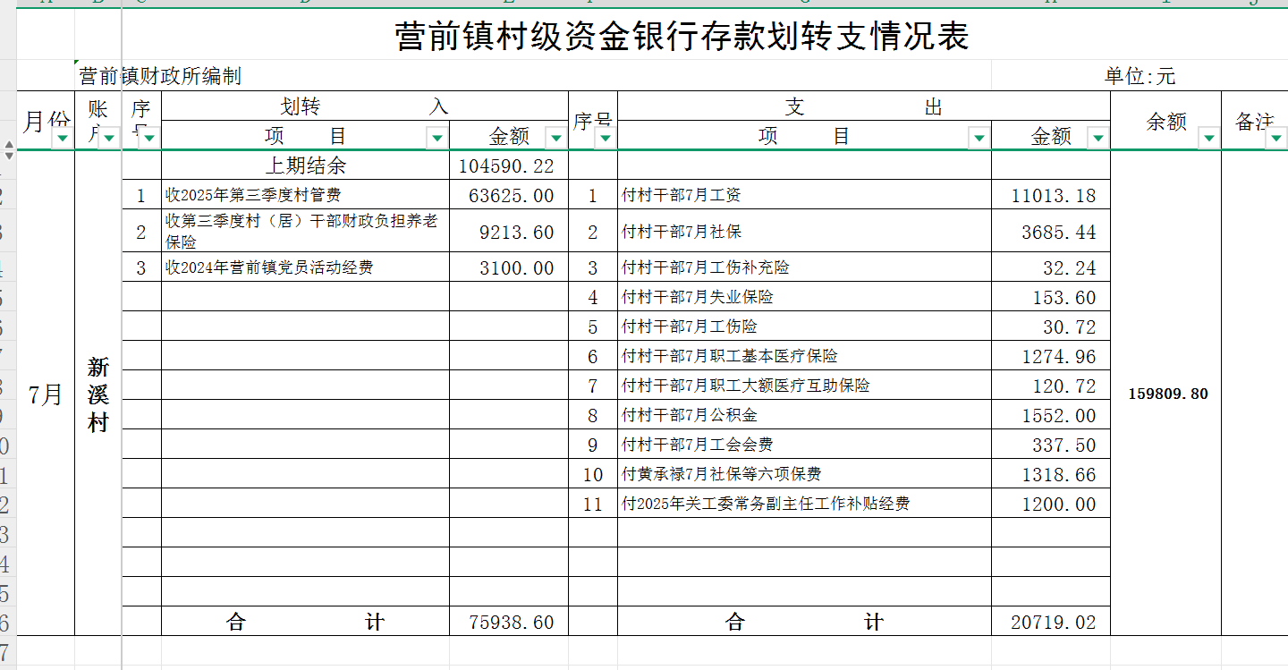 營前鎮(zhèn)新溪村財務(wù)收支情況登記表