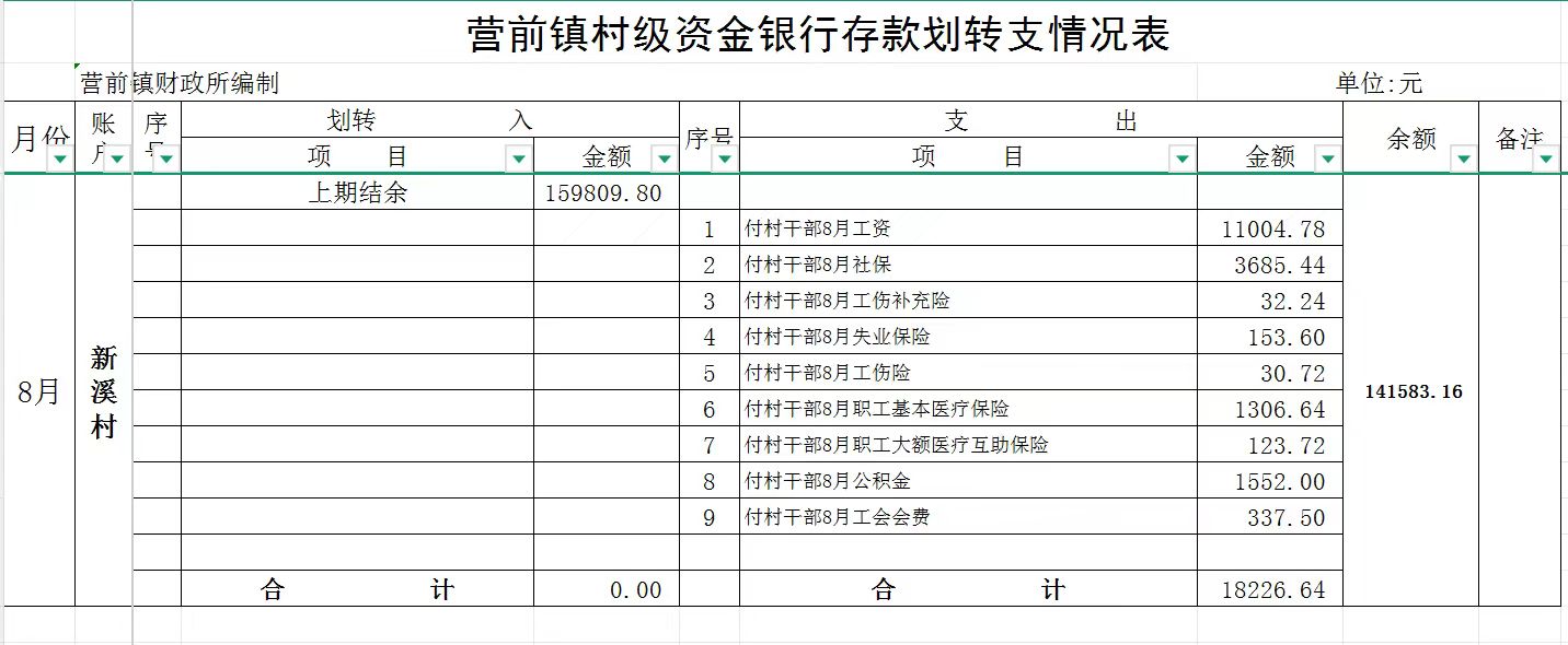 營(yíng)前鎮(zhèn)新溪村村級(jí)資金銀行存款劃轉(zhuǎn)支情況表