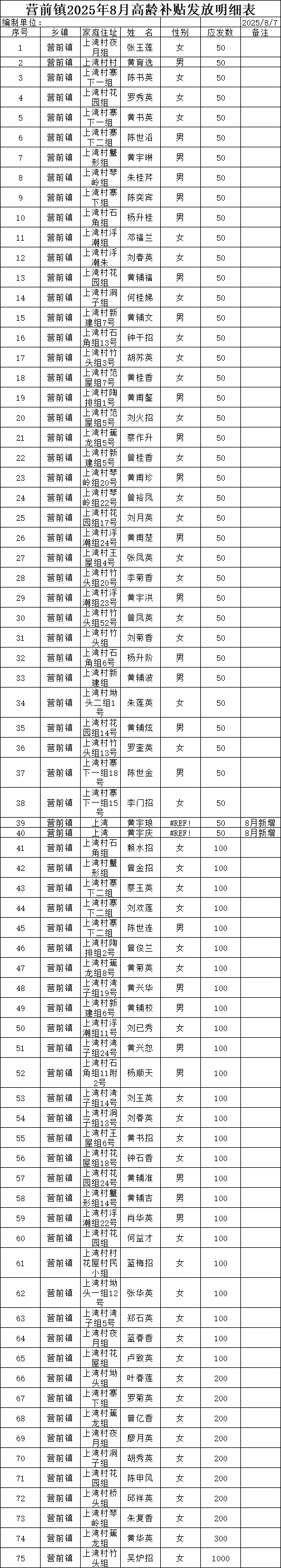 2025年?duì)I前鎮(zhèn)上灣村高齡補(bǔ)貼發(fā)放表