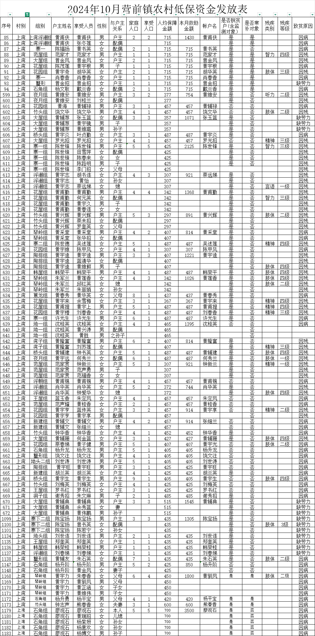 2024年10月營前鎮(zhèn)上灣村低保金發(fā)放表