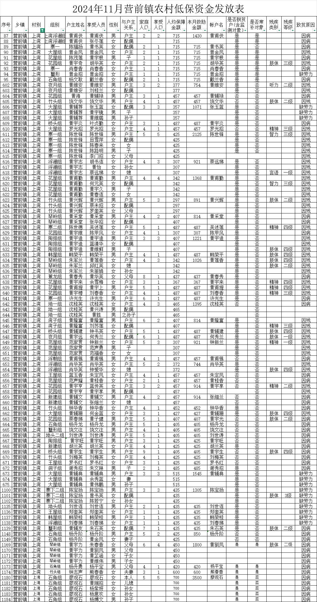 2024年11月營前鎮(zhèn)上灣村低保金發(fā)放表