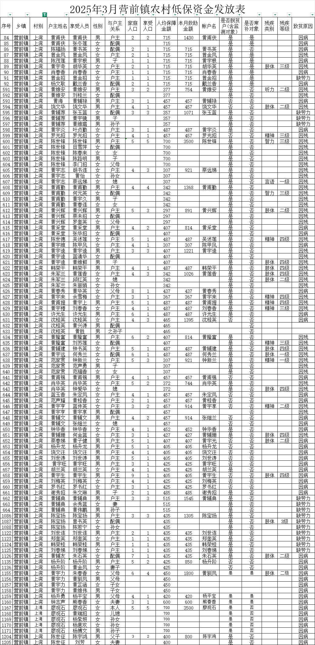 2025年3月營前鎮(zhèn)上灣村低保金發(fā)放表