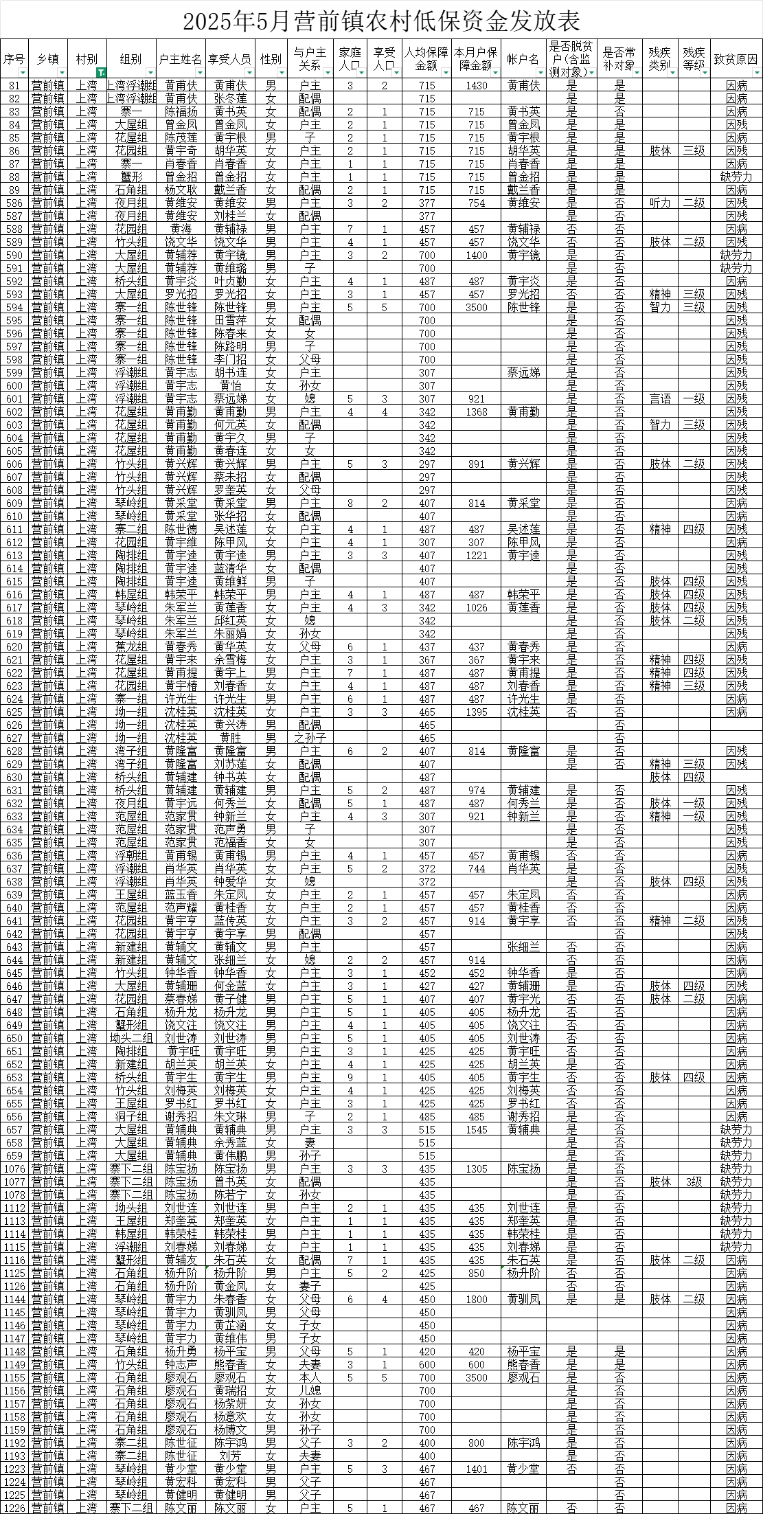 2025年5月?tīng)I(yíng)前鎮(zhèn)上灣村低保資金發(fā)放表