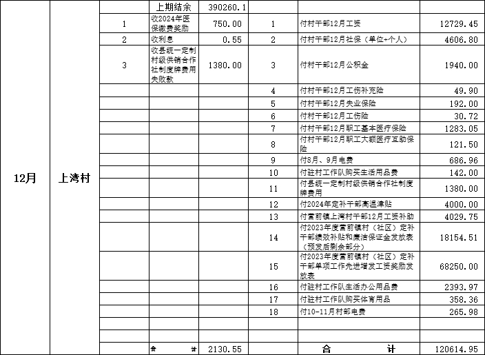 2024年?duì)I前鎮(zhèn)上灣村12月村級(jí)財(cái)務(wù)收支