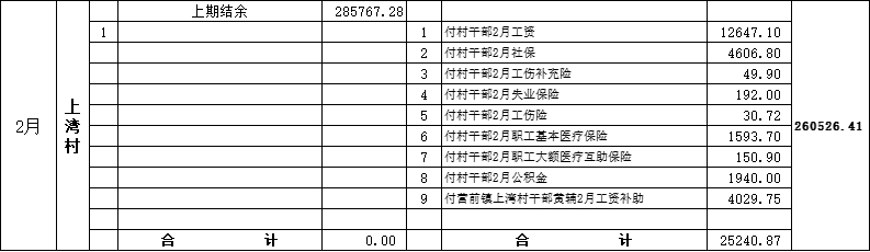 營(yíng)前鎮(zhèn)上灣村2025年2月村級(jí)財(cái)務(wù)收支表