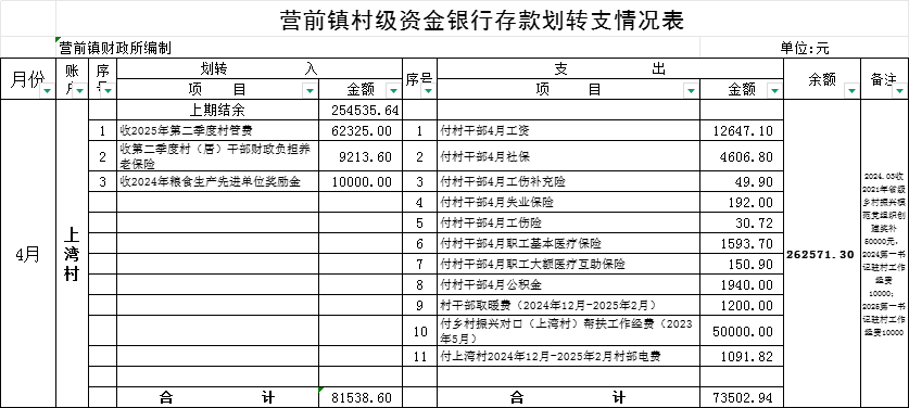 營前鎮(zhèn)上灣村2025年4月村級財(cái)務(wù)收支表