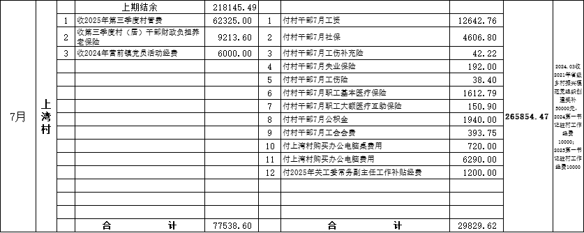 營(yíng)前鎮(zhèn)上灣村村級(jí)財(cái)務(wù)收支情況登記表