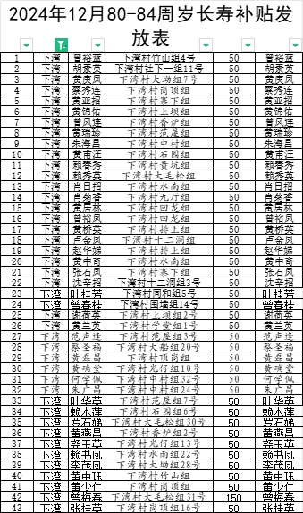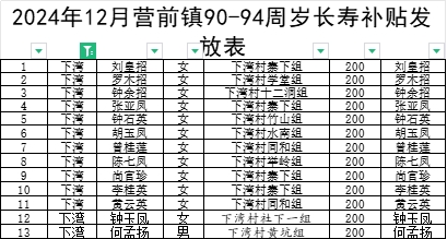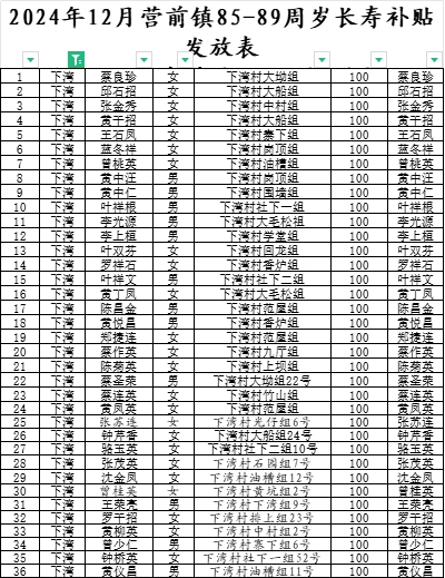 營前鎮(zhèn)下灣村2024年12月長壽補貼發(fā)放表