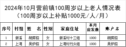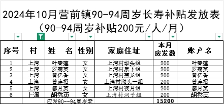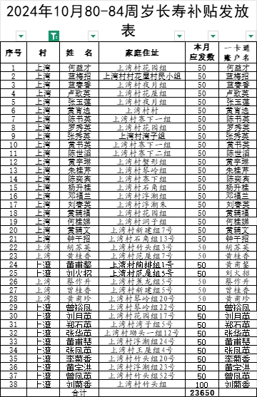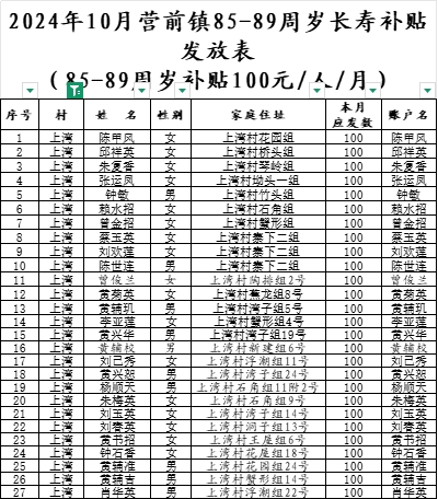 2024年10月上灣村長(zhǎng)壽補(bǔ)貼發(fā)放表
