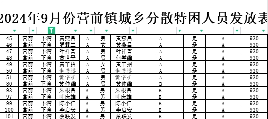 營(yíng)前鎮(zhèn)下灣村2024年9月分散特困供養(yǎng)人員生活費(fèi)發(fā)放表