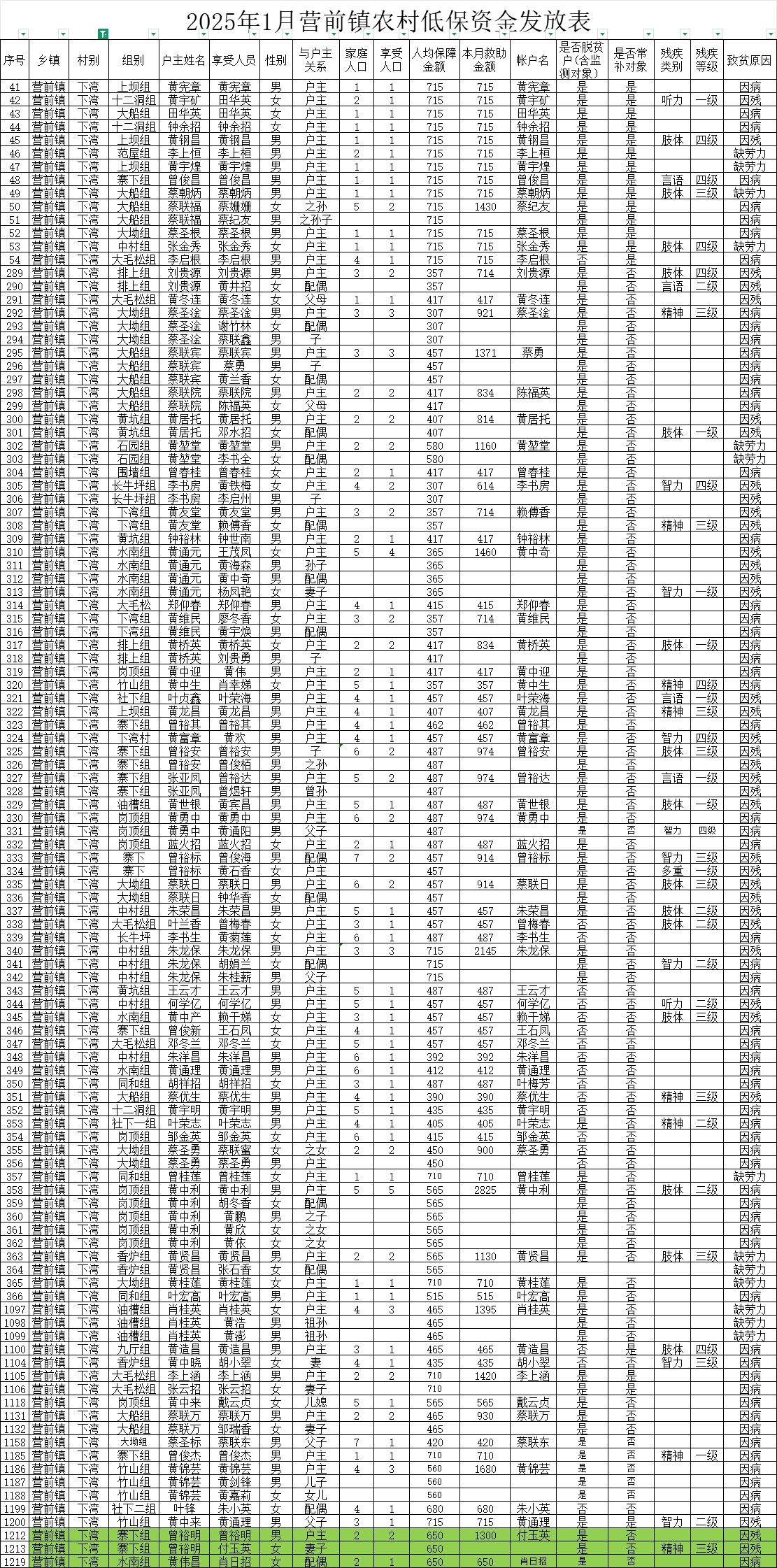 2025年1月營前鎮(zhèn)下灣村低保資金發(fā)放表
