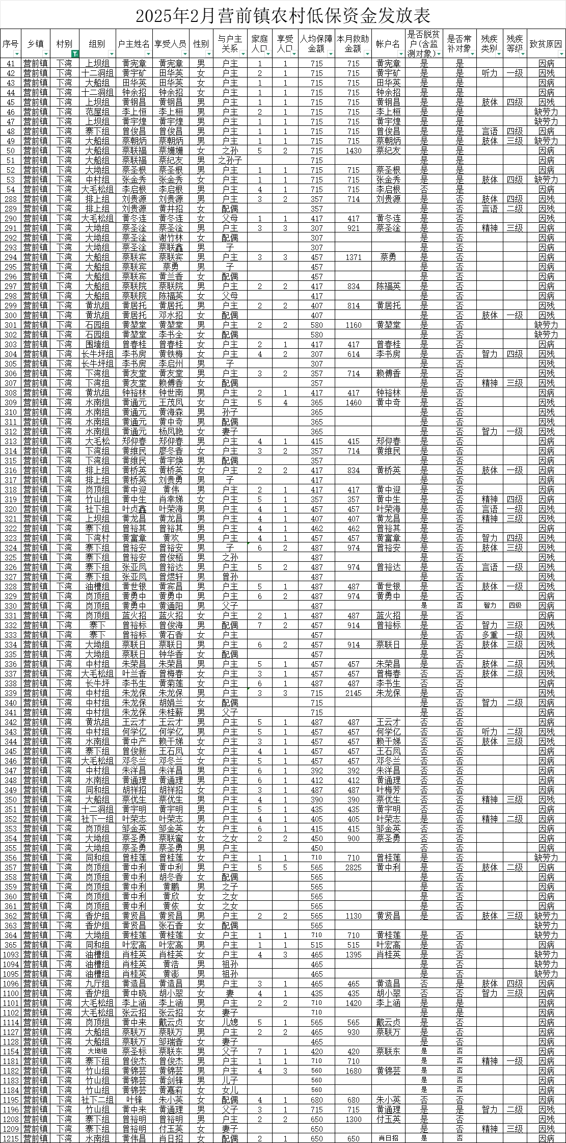 2025年2月營前鎮(zhèn)下灣村低保資金發(fā)放表