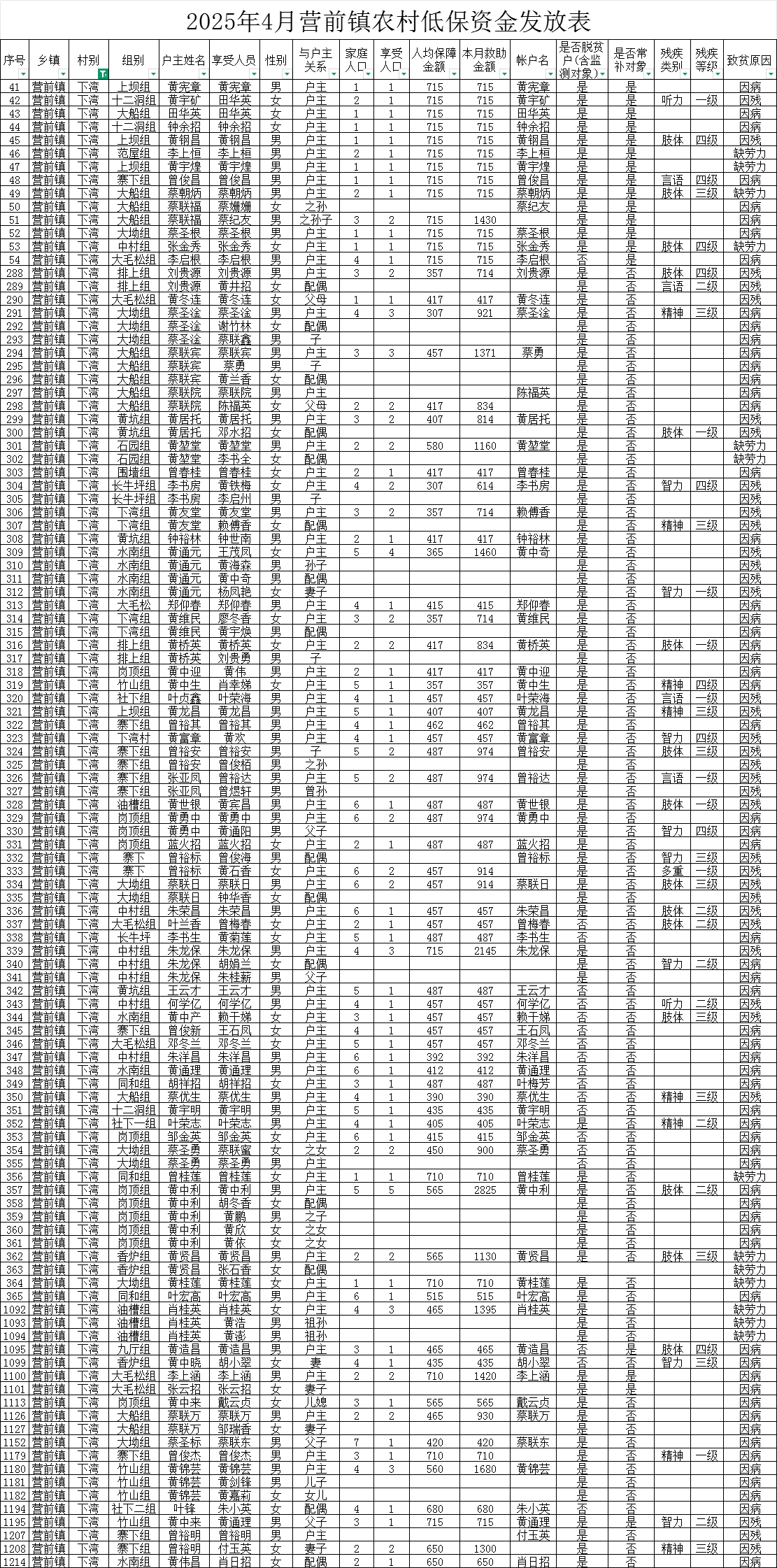 2025年4月營前鎮(zhèn)下灣村低保金發(fā)放表