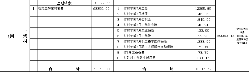 營(yíng)前鎮(zhèn)下灣村2024年7月村級(jí)財(cái)務(wù)收支登記表