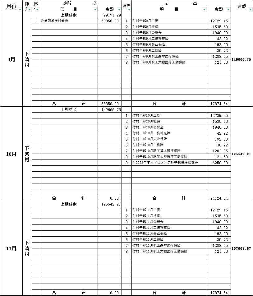 營前鎮(zhèn)下灣村2024年9-11月財(cái)務(wù)收支登記