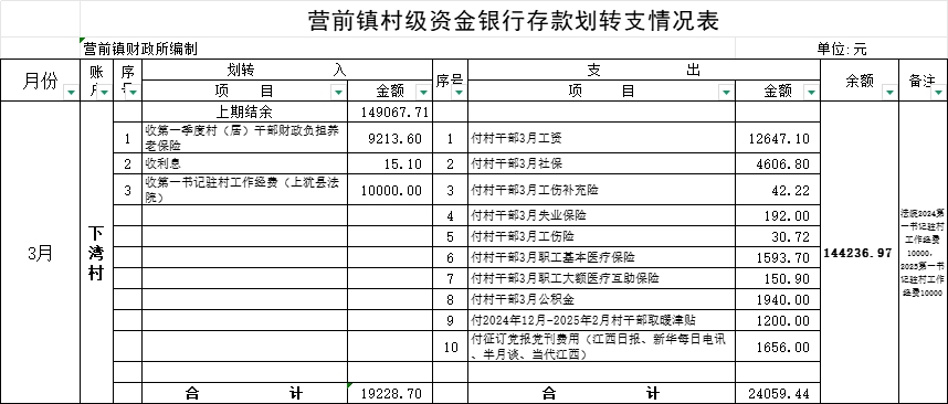 2025年3月營前鎮(zhèn)下灣村財務(wù)收支登記表