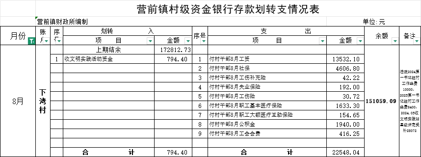 營前鎮(zhèn)下灣村村級資金銀行存款劃轉支情況表