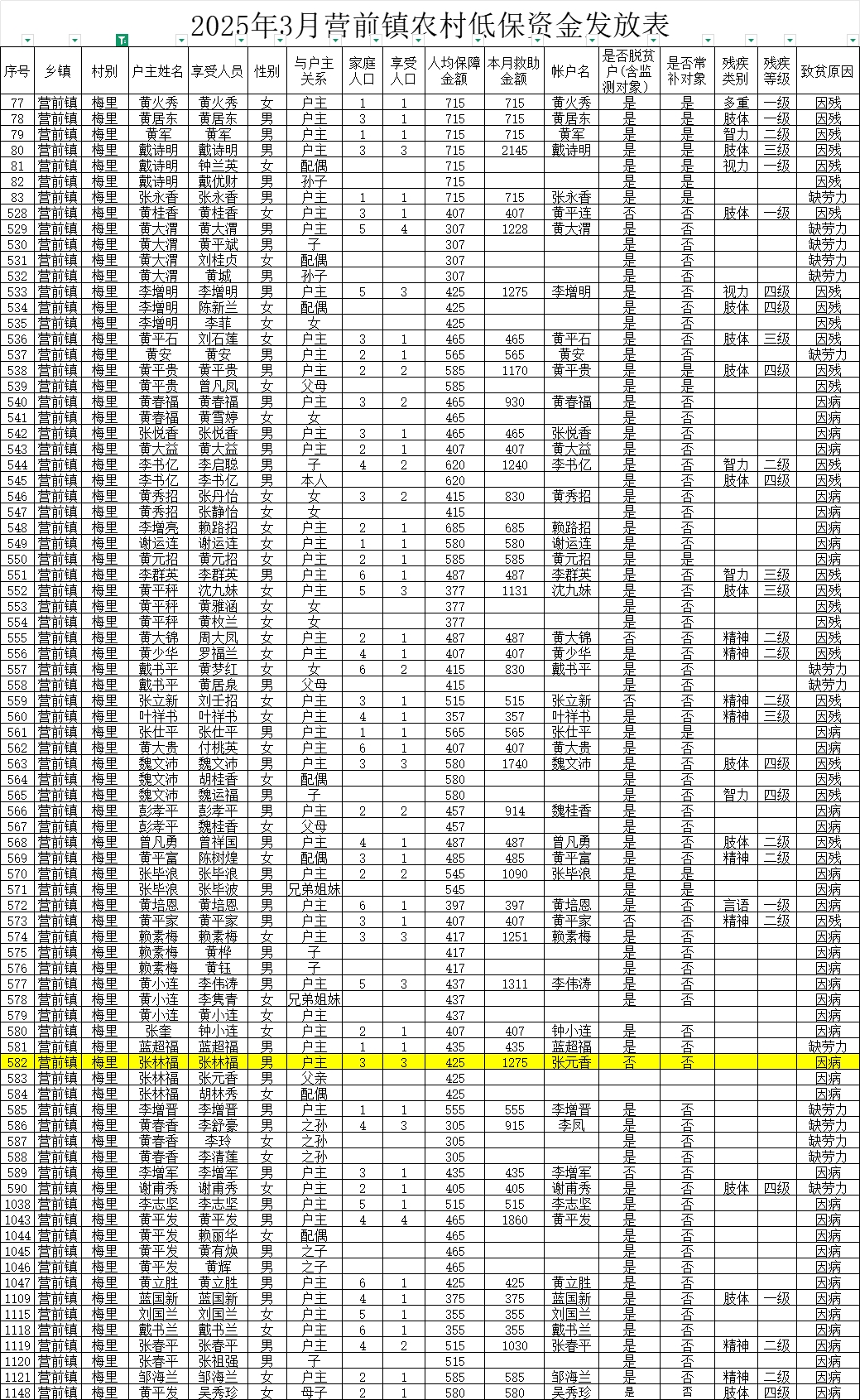 2025年3月營前鎮(zhèn)梅里村低保金發(fā)放表