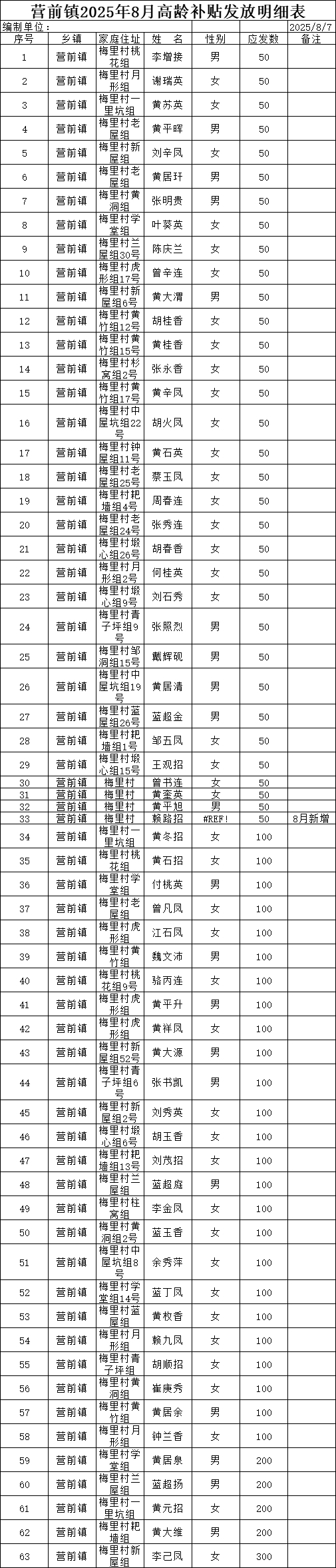 2025年?duì)I前鎮(zhèn)梅里村高齡補(bǔ)貼發(fā)放表