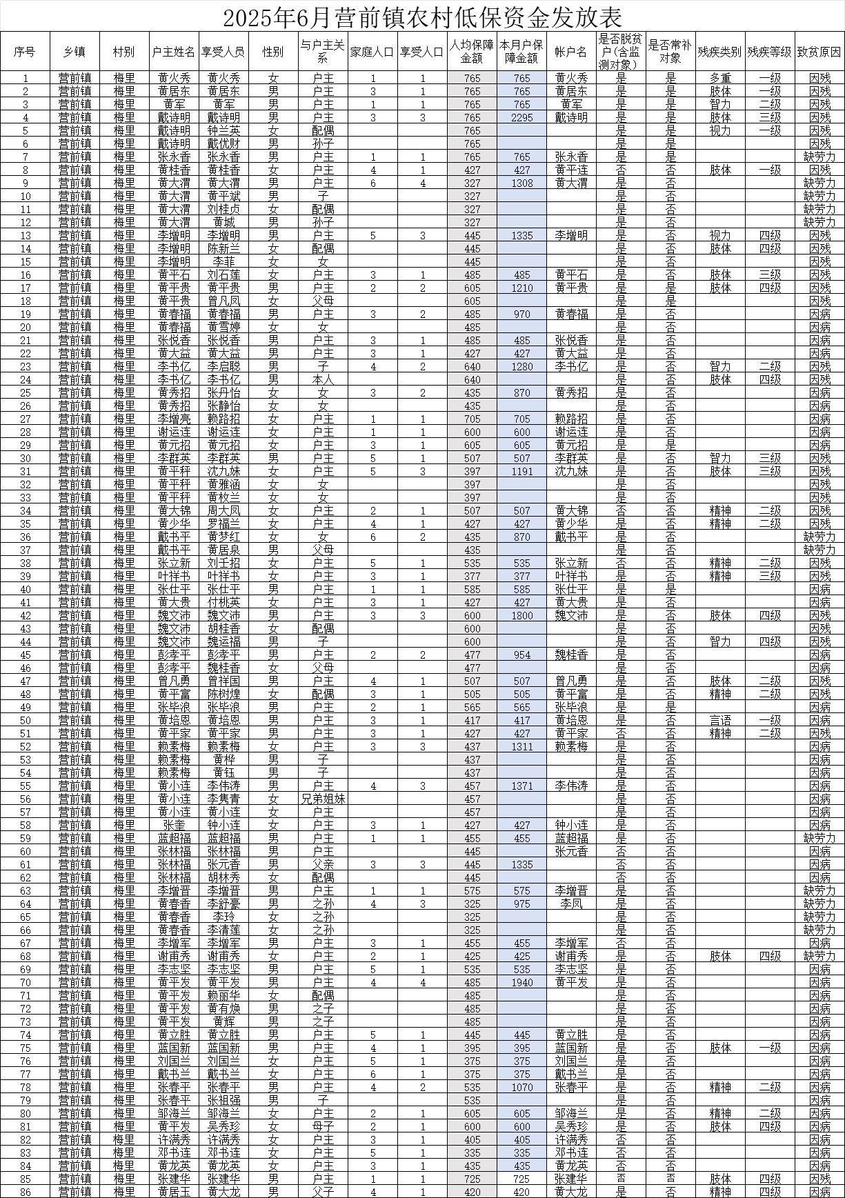 2025年6月營前鎮(zhèn)梅里村低保資金發(fā)放表