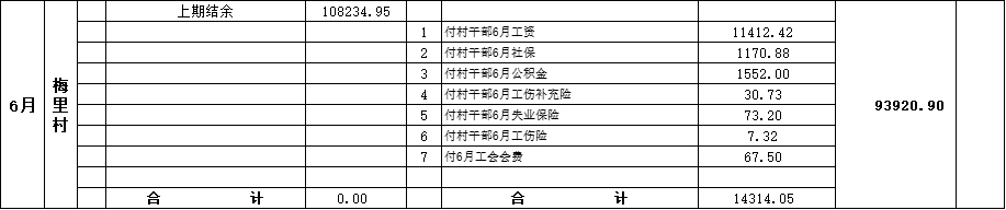 營前鎮(zhèn)梅里村2024年6月村級財務(wù)收支登記表