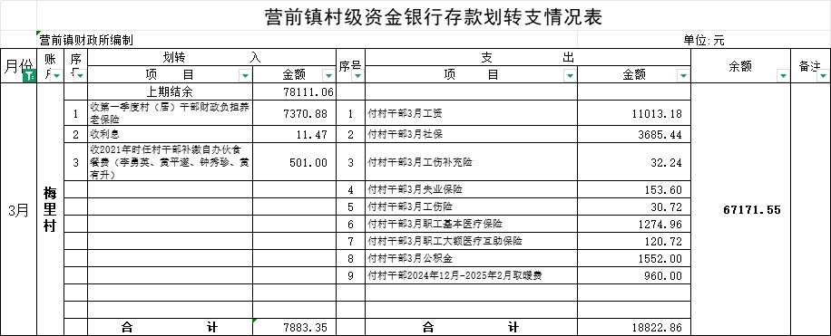 2025年3月營前鎮(zhèn)梅里村財務(wù)收支登記表