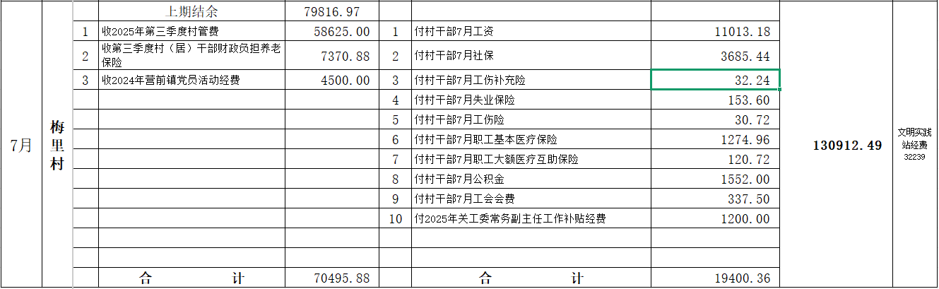 2025年7月營前鎮(zhèn)梅里村村級財(cái)務(wù)收支
