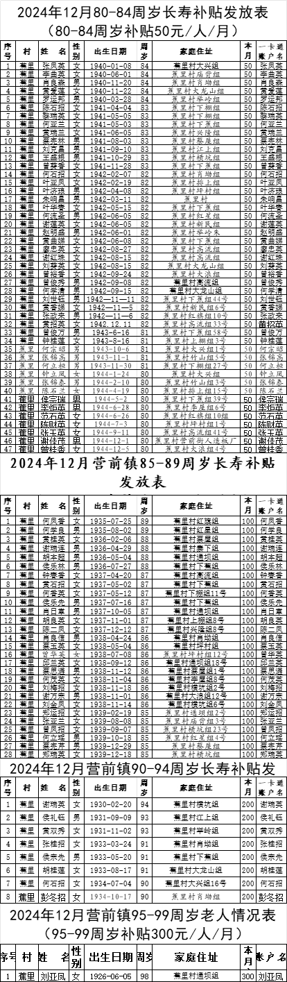 營(yíng)前鎮(zhèn)蕉里村2024年12月高齡補(bǔ)貼發(fā)放表