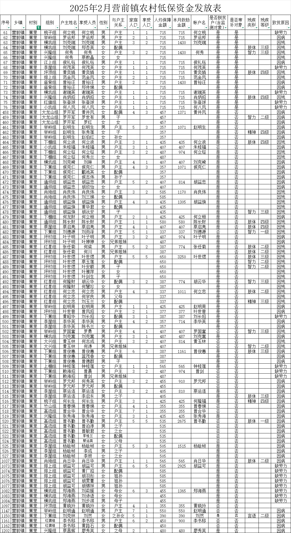 2025年2月?tīng)I(yíng)前鎮(zhèn)蕉里村低保金發(fā)放表