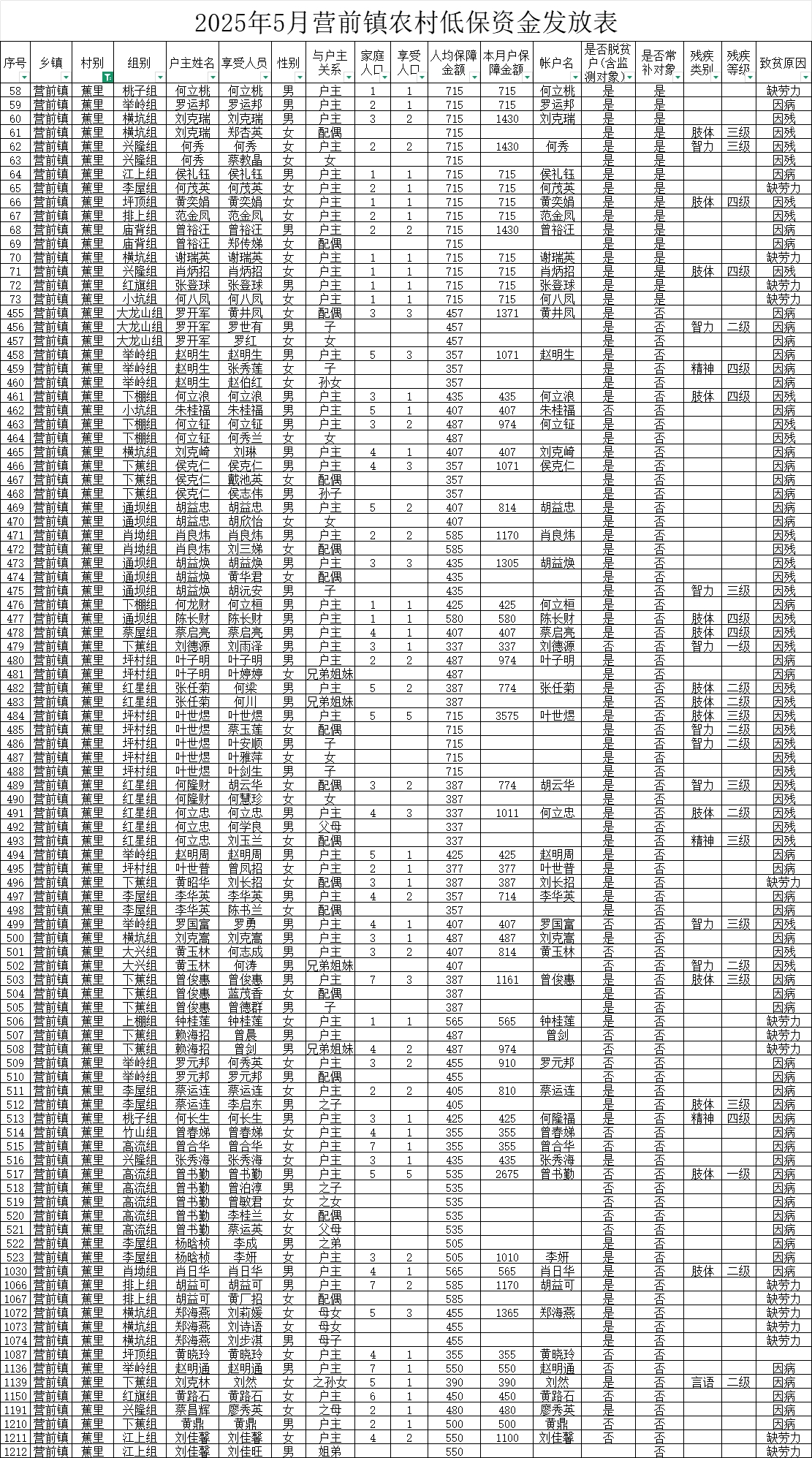 2025年5月營(yíng)前鎮(zhèn)蕉里村低保資金發(fā)放表