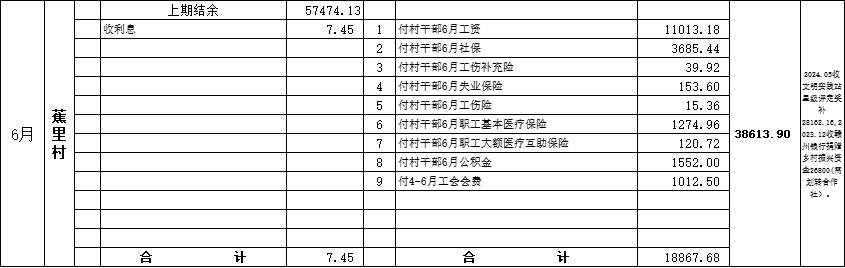 營前鎮(zhèn)蕉里村2025年6月村級(jí)財(cái)務(wù)收支登記表